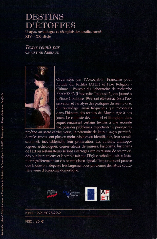 Organisées par l'AFET et l'axe Religion - Culture - Pouvoir du Laboratoire de recherche FAMESPA (Université Toulouse 2), les Journées d'Etudes de Toulouse de 1999 ont été consacrées à l'observation et l'analyse des pratiques de réemploi et du ravaudage, aussi fréquentes que reconnues dans l'histoire des textiles du Moyen Age à nos jours.