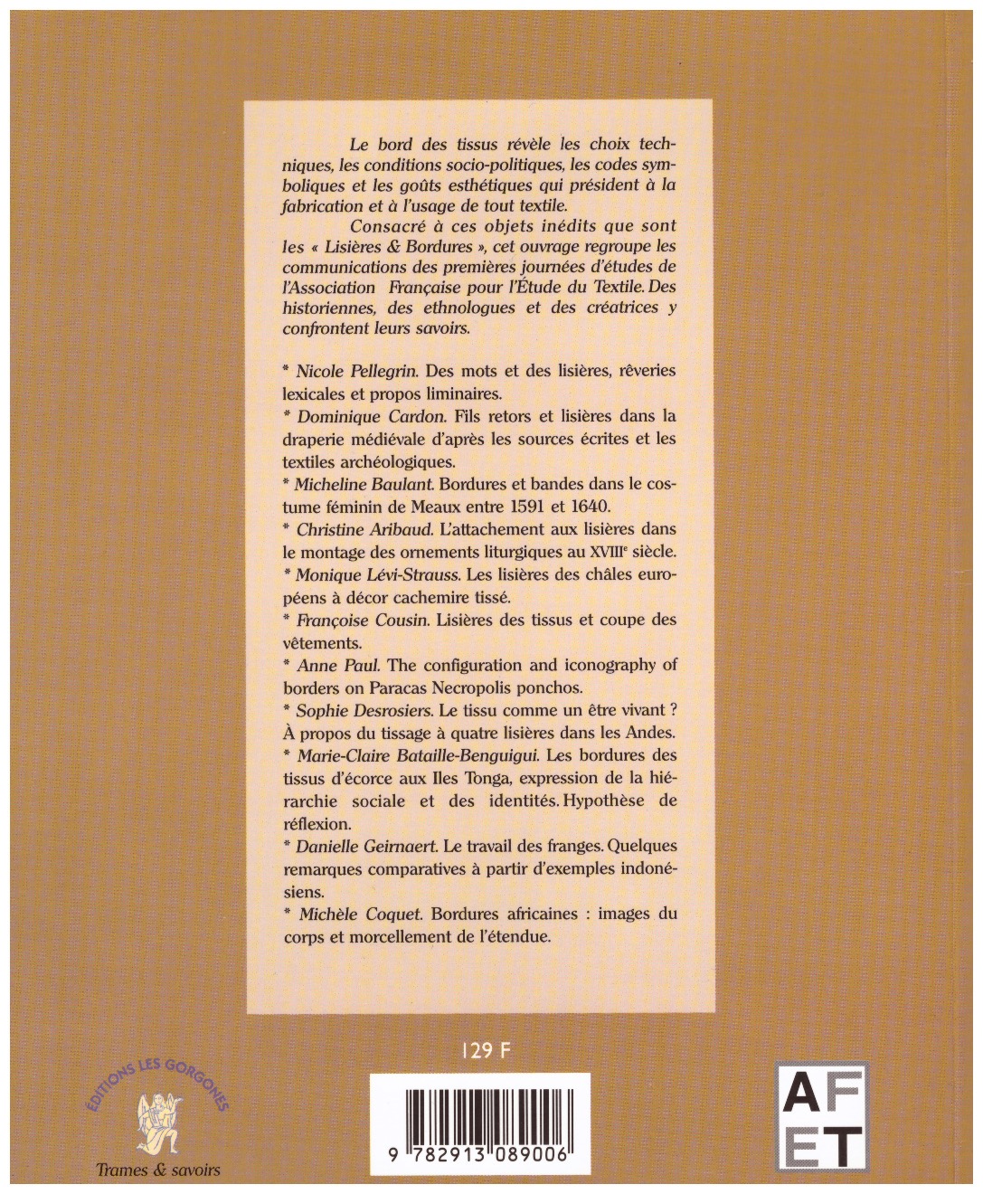 Consacrés à ces objets que sont les "Lisières & Bordures", cet ouvrage regroupe les communications des premières Journées d'Etudes de l'AFET organisées à Paris en 1996. Des historiens, des ethnologues et des créatrices y confrontent leurs savoirs.
